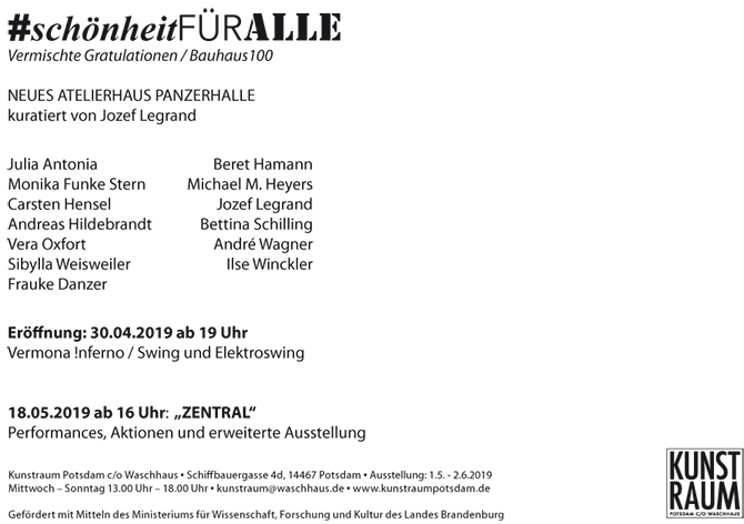 Die Ausstellung im KunstHaus Potsdam ist eröffnet und alle Informationen zu den Öffnungszeiten und Veranstaltungen entnehmen Sie bitte der Einladung.
